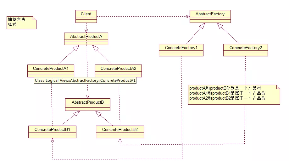 来看看抽象工厂模式的各个角色(和工厂方法的如出一辙):