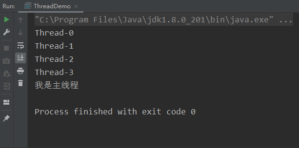 public static void main(String[] args) throws InterruptedException {         for (int i = 0; i < 4; i++) {             ThreadDemo threadDemo = new ThreadDemo();             threadDemo.start();             threadDemo.join();         }         System.out.println("我是主线程");     } }