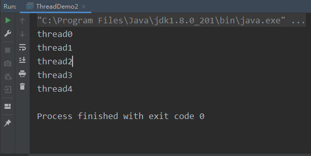 public static void main(String[] args) {         for (int i = 0; i < 5; i++) {             int temp = i;             Thread thread = new Thread(new Runnable() {                 @Override                 public void run() {                     System.out.println("thread" + temp);                 }             });             executorService.submit(thread);         }         executorService.shutdown();     } }